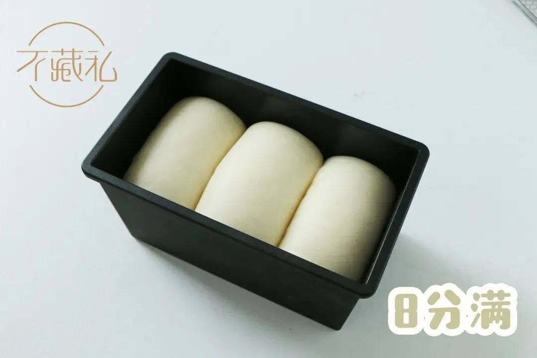另外做越大的平顶吐司(模具长度越长),建议将面团分割成2份或以上,面团发酵后顶部的高度会比较平均。