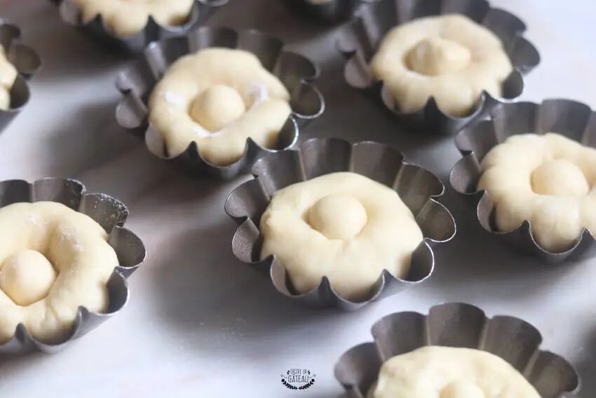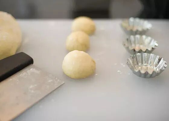 *分割的面团越大,在预整形后需要的松弛时间也就越长。制作大型布里欧修,分割出来的面团少说都有几百克,而小布里欧修一般都在50g上下。