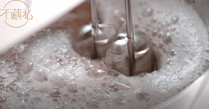 ①把冰粉籽直接放入水中,打蛋器高速开打,几分钟后已出现大量泡沫(建议用小尺寸的盆子,更快起泡)。