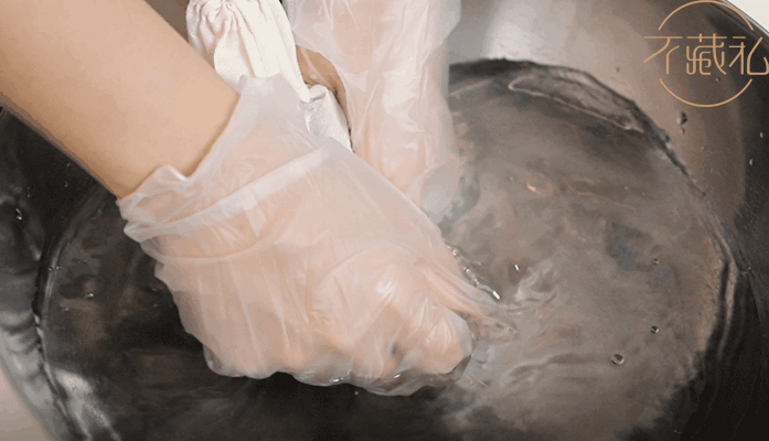 ③搓的手法像洗衣服,把粘粘的浆液都搓到水里。