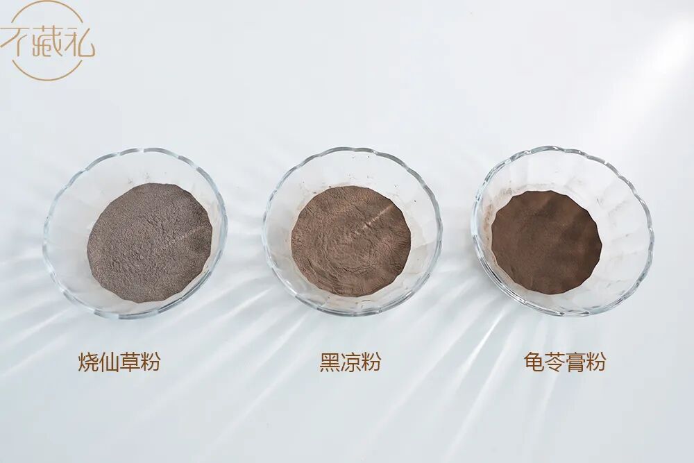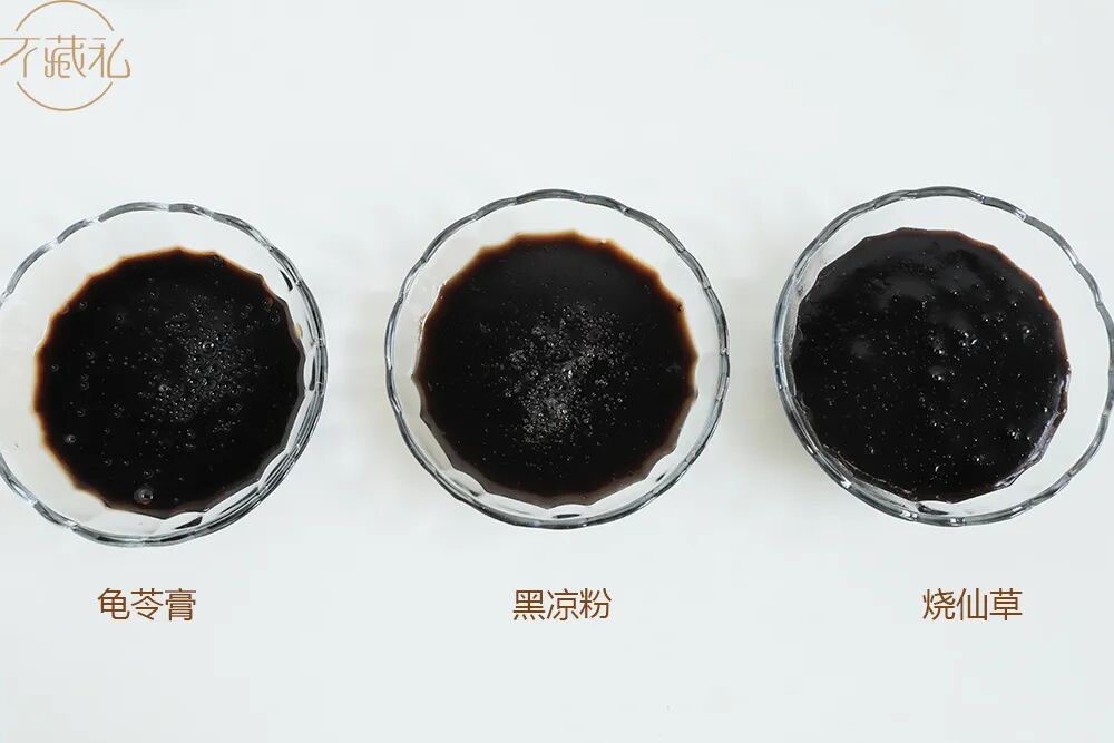 其实黑凉粉、烧仙草、龟苓膏最基础的原料都是凉粉草,它有消暑、清热、解毒功能。把凉粉草加入少量食用碱熬煮后,加入凝固介质,冷却后就有了duang duang的质感。那三者有何区别?