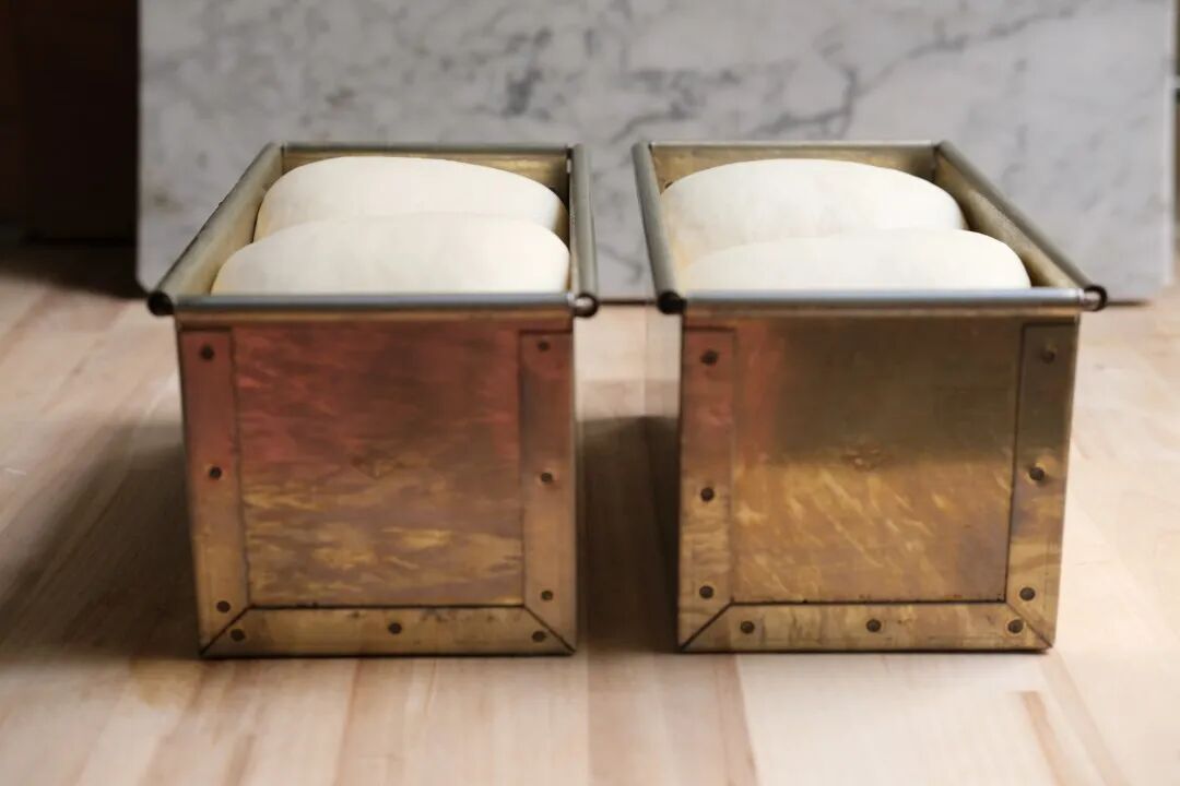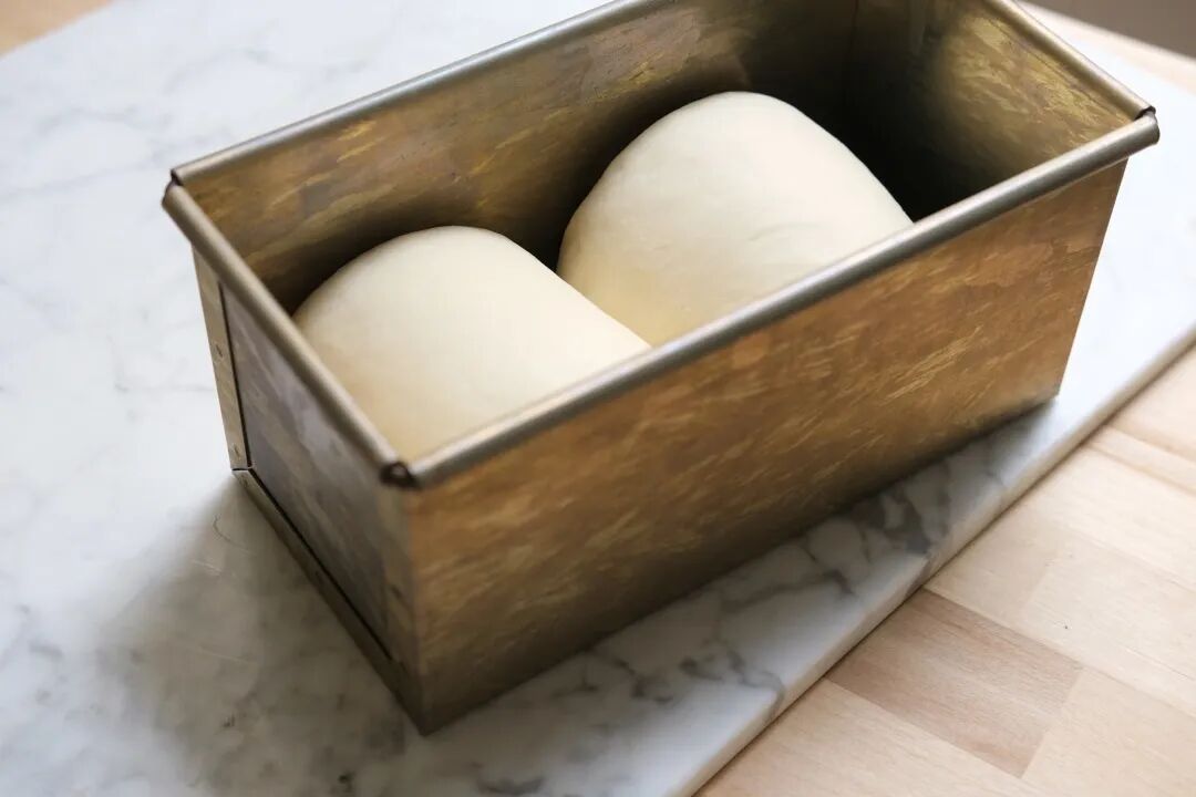 面团放入模具,放在30℃的环境下,最终发酵1小时左右。