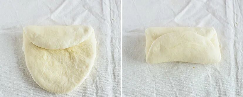 但是进行分割、滚圆的时候,会感觉使用巴氏奶的面团延展性更强,整体比较瘫软。而使用高温灭菌奶的面团更有弹性,擀开的时候还会有一点轻微回缩。