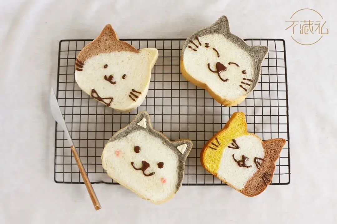 天哪!这是个被低估了的模具,容错性很高,任何吐司配方都可放进去,你只需要换算成适合模具的比例就好了。猫咪吐司模具一般有3种大小:280g、450g、600g,网上大部分吐司配方针对的是1个450g吐司模具份量,如果你手中的是450g猫咪模具,好办,直接套用配方。手上模具是280g,只需要把配方食材量分别 x 0.62就成功转换了(0.62是280除以450的比值)。同理手上模具是600g,把配方食材量分别 x 1.33就能成功转换了。