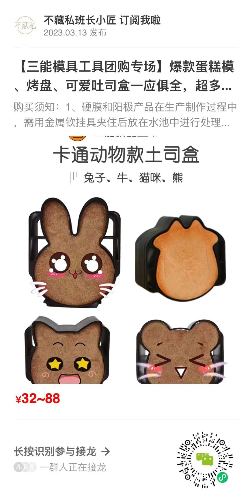 不过下面推荐给大家的三能模具就可以闭眼入了,各种常用的吐司、蛋糕模具、烤盘都有,质量好也耐用,不藏私都用很久啦,开团价格更美丽!有需要的小伙伴长按识别下方二维码入手吧。