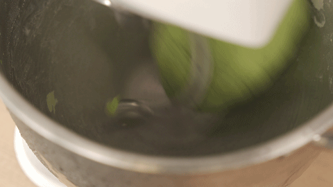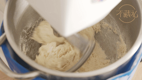 *第一阶段是机器慢速搅拌,让松散的食材联结成面团。