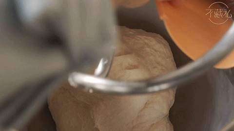 把残留在搅拌桶四周的食材,用刮板刮下来,重新融入面团中,减少耗损,最少化影响面团风味。