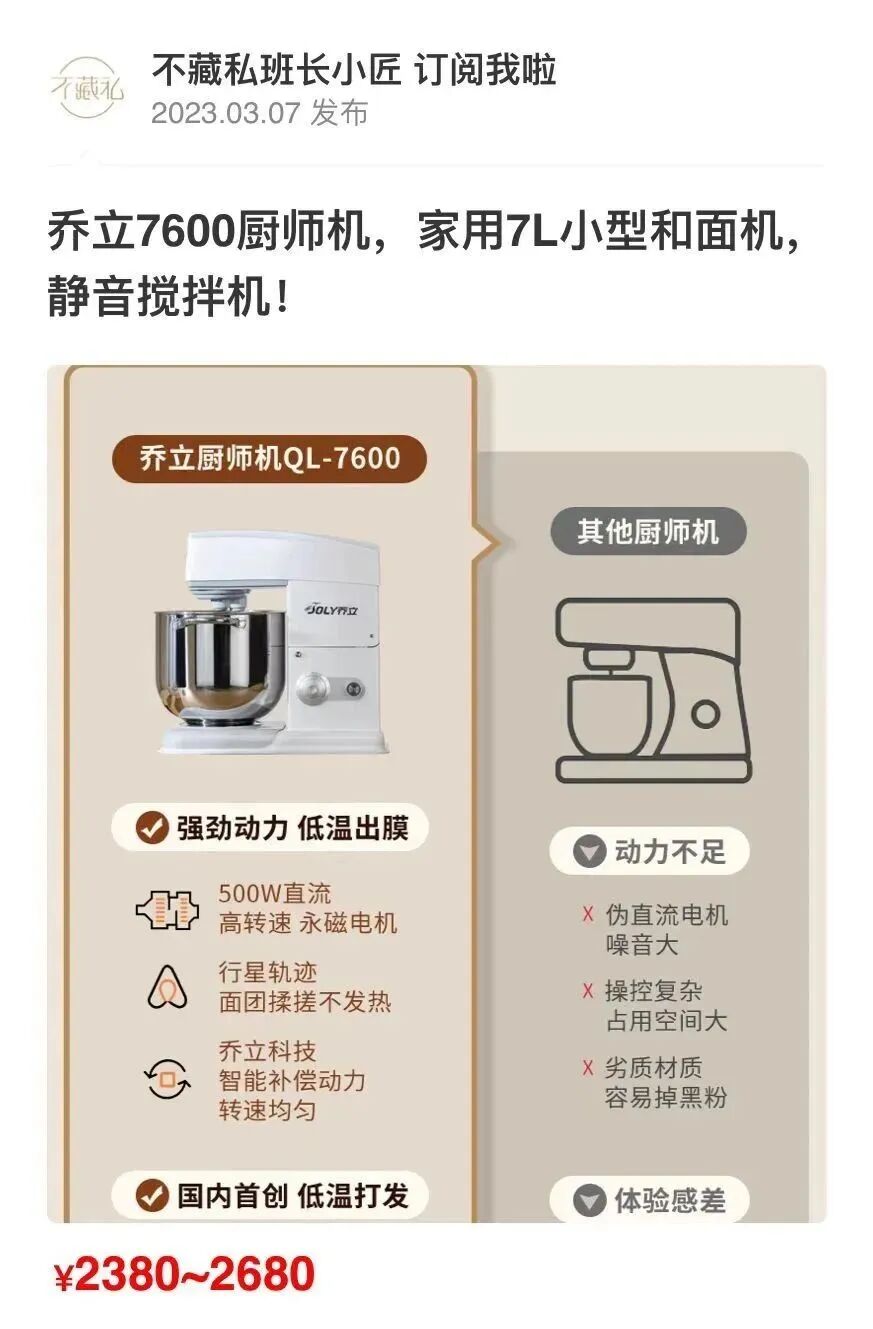 当然了,一台好用的厨师机,也会让打面事半功倍。经常有人问不藏私用的是哪一款?其实我们拍摄视频常用的就是7L的乔立7600,容量大,还有控温桶,用起来很方便,了解详情可以点下面图片👇