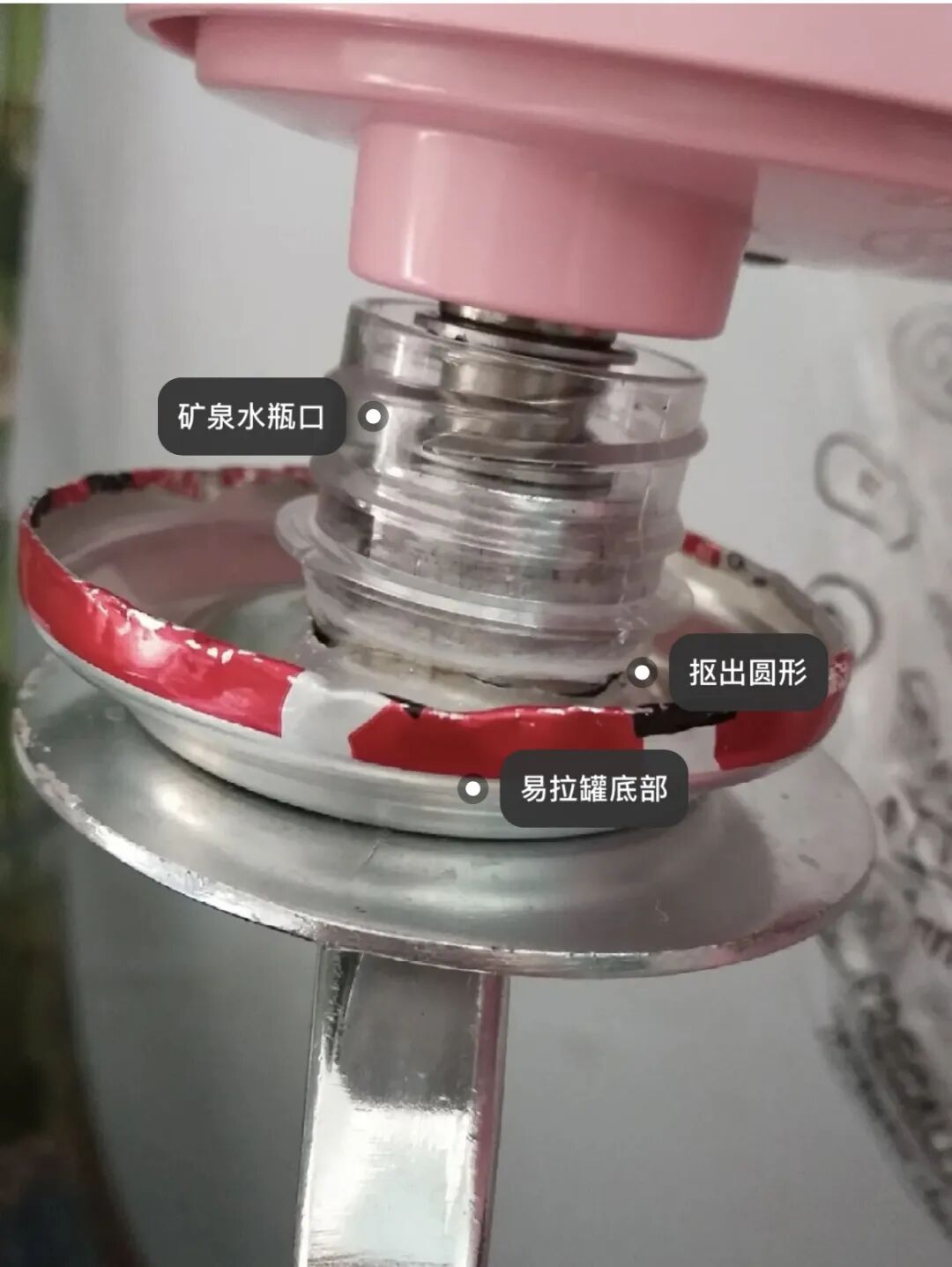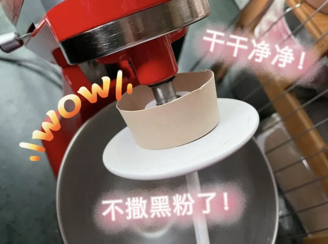 “做了厨师机套子,黑粉不会洒出来了是用易拉罐底部和矿泉水瓶顶部组合在一起。”