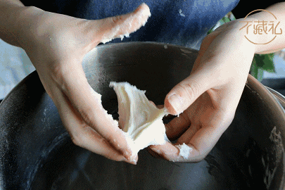 4.面团不太粘手,能拉出有大片有锯齿的膜。