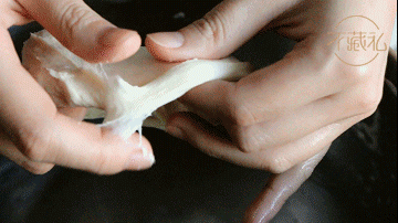 4.面团能拉出薄膜,但非常脆弱,很容易被被撑破。