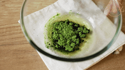 抹茶粉是很容易见光后氧化变色的粉末,所以要保存好它,第一点是要避光。假如你买了大包装的抹茶粉要分装的话,千万不要放在透明的罐子里。另外,抹茶类点心如抹茶蛋糕、抹茶饼干,同样容易见光氧化。有的朋友当天做的抹茶点心很好看,放置几天后,就变黄变灰了,就是这个原因。