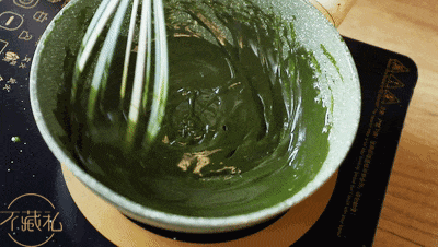 做法也很简单呢。在牛奶中加入适量的抹茶粉(分量看个人口味添加),用搅拌机搅拌30秒左右,这样可以充分地让抹茶粉融于牛奶中。