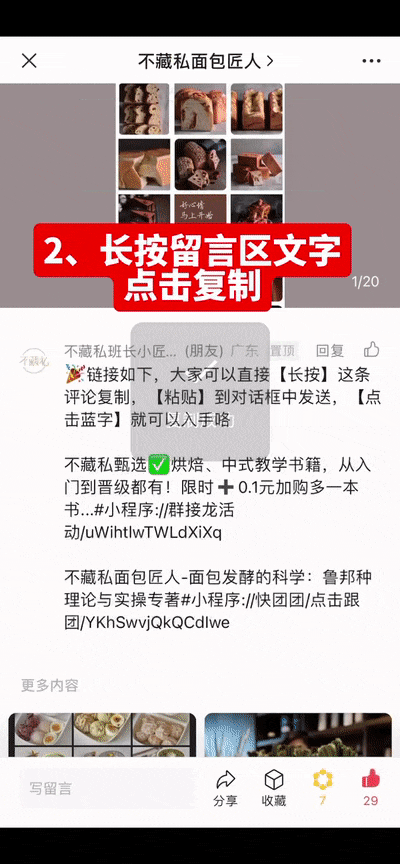 1、根据以下步骤(左右滑动浏览),复制留言区的文字到微信对话框打开。