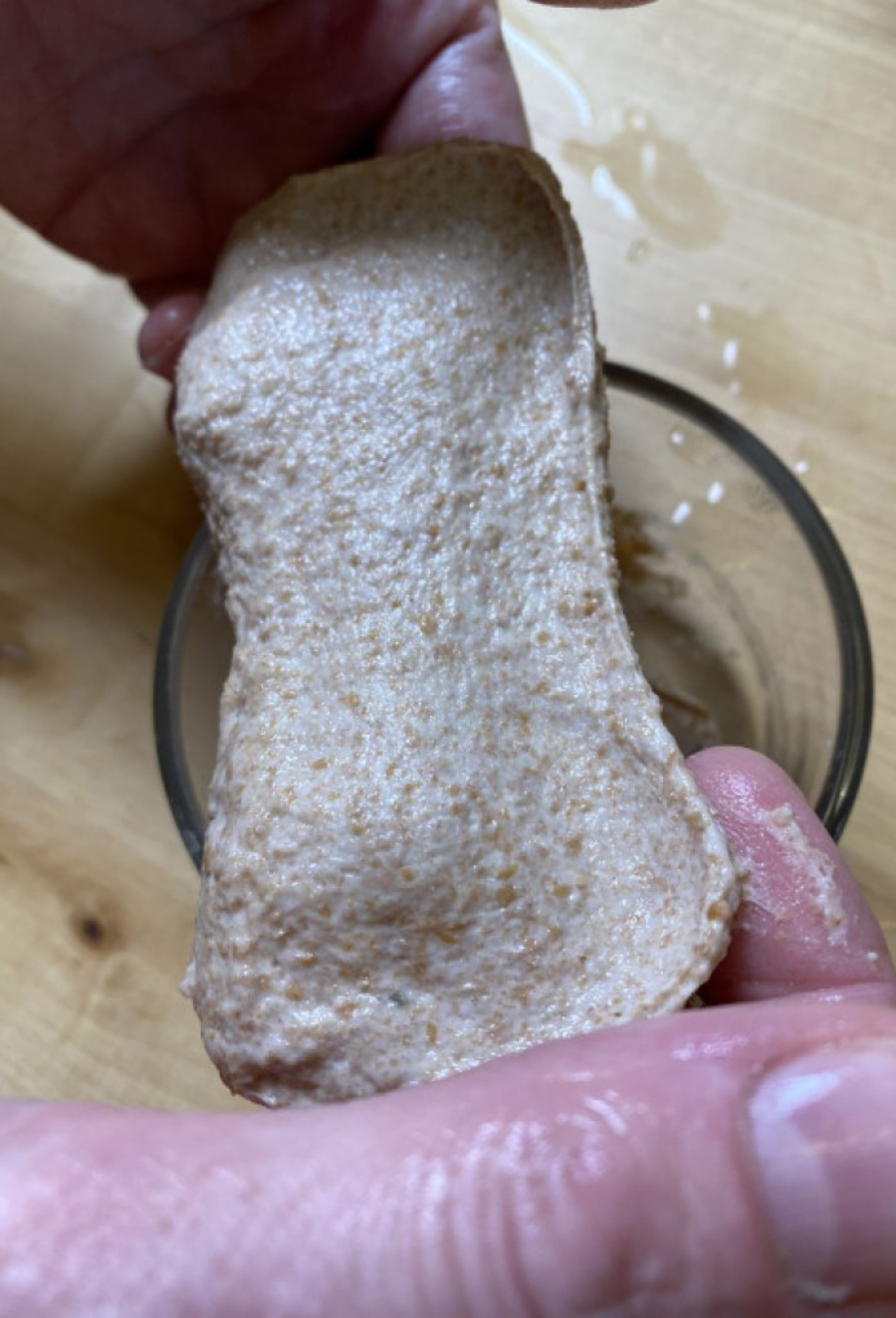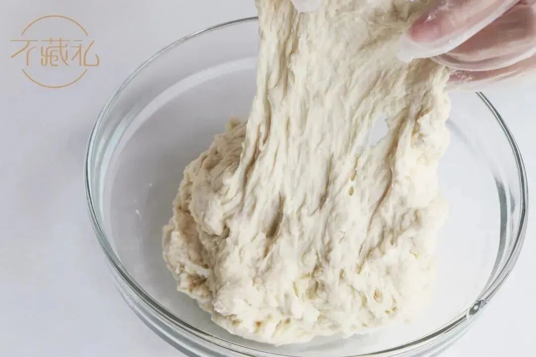 经过1.5小时冷藏水合的面团,大概有4成面筋