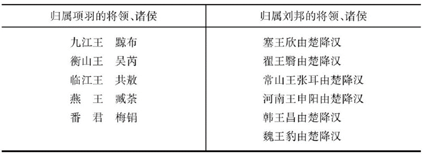 除了上述的诸侯王之外,参与了齐楚战争(反对项羽)的陈馀、彭越,甚至于项羽麾下的陈平也审时度势,主动投入了汉军的怀抱。