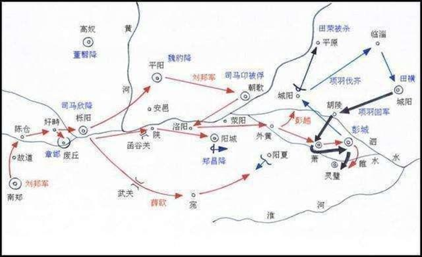 可见,项羽、刘邦两大集团的第一次正面碰撞,还是善战的西楚霸王占据着优势。