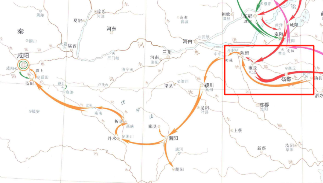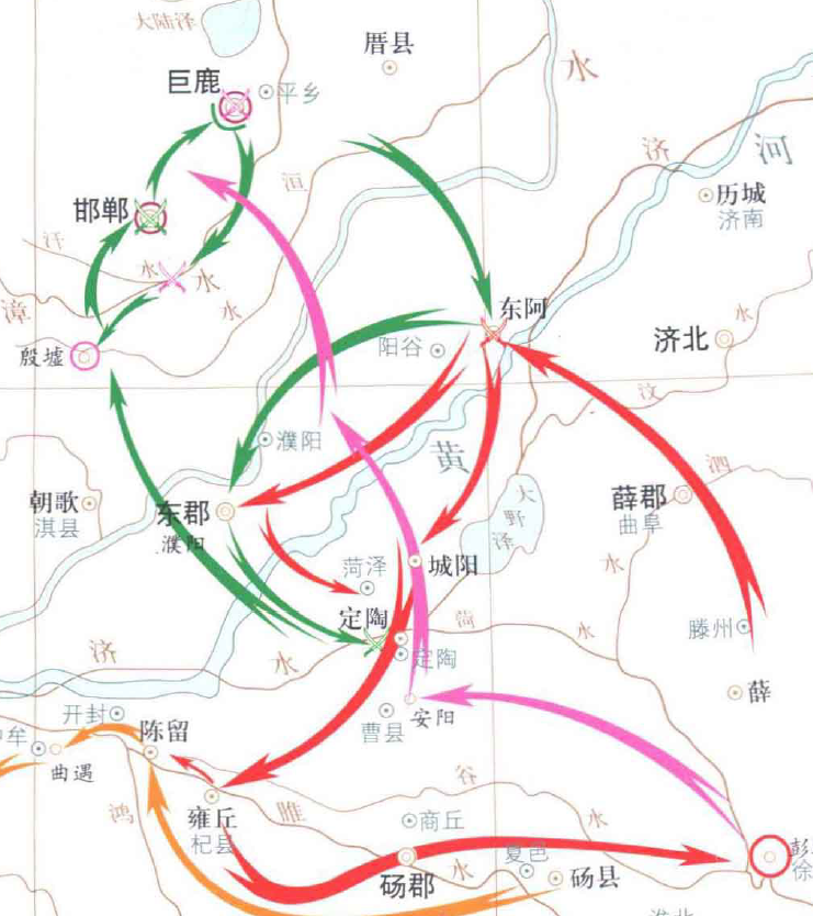 ▲秦军(绿色线路)包围赵国巨鹿