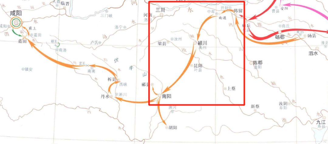 ▲刘邦南下围困南阳郡内的宛城