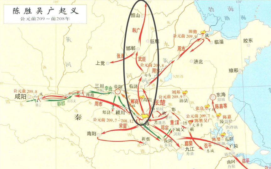 ▲陈胜起义军用兵示意图