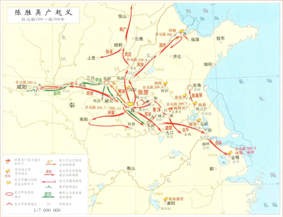 ▲陈胜起义军制定向西攻秦的行军计划