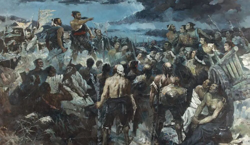此时倒在脚下的两名将尉已不足以平息怨愤,陈胜趁热打铁,即刻树立"张楚"的旗号,号令900名戍卒斩木为兵,揭竿为旗;这支手持木棍,人数不过一千,全部由底层贫民组成的革命军有了全新的目标——推翻暴秦的统治。