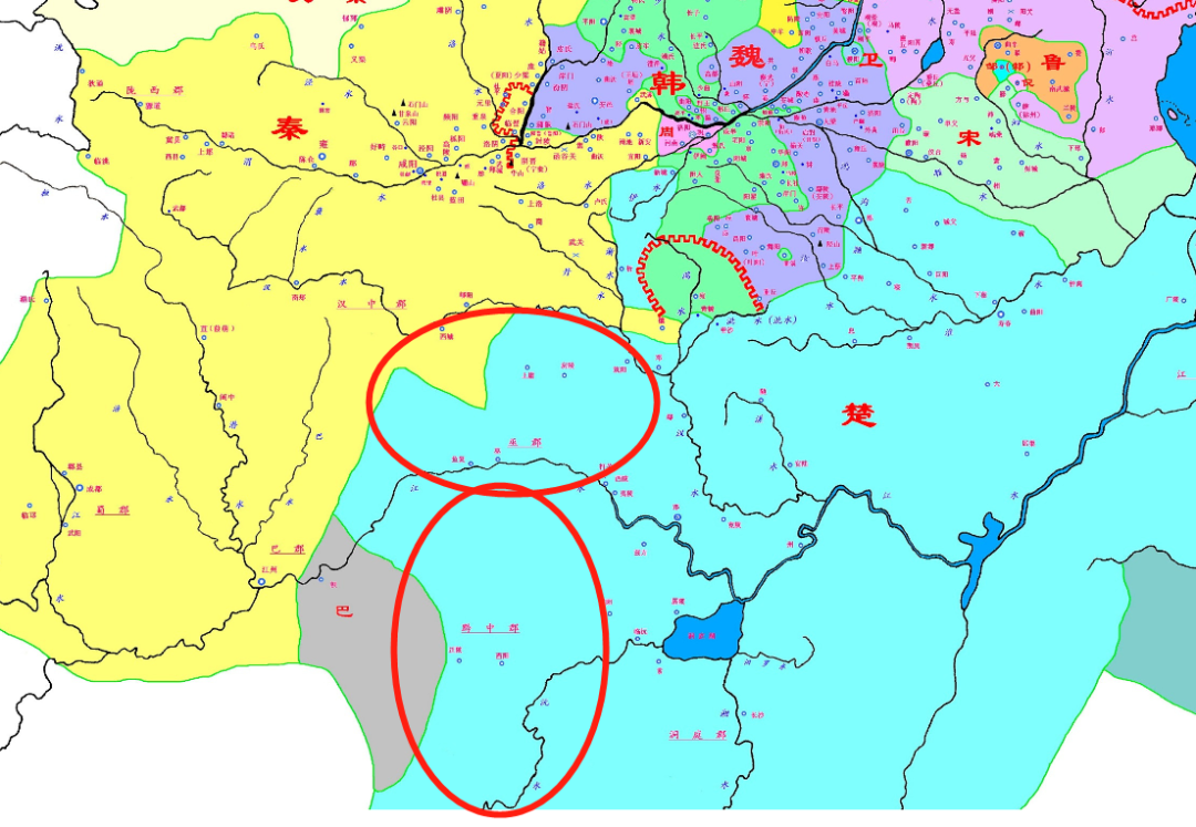 从地图上看,这两个郡是楚国抵御秦国巴蜀地区的前线要塞,而在此之前的蓝田之战秦国就夺走了汉中郡。