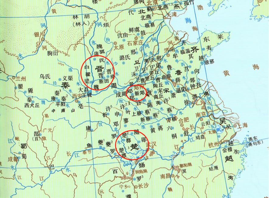 从地图上我们可以看到,郑国的地理位置比较"尴尬",刚好介于晋楚之间。