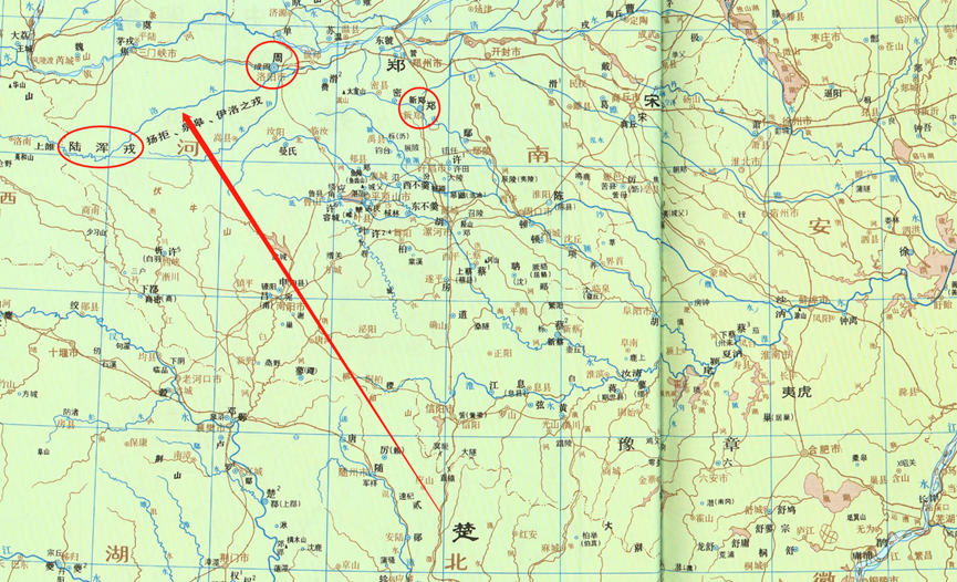 从地图上我们可以观察到,楚军所在的位置离周的都城洛邑已经非常的近了。