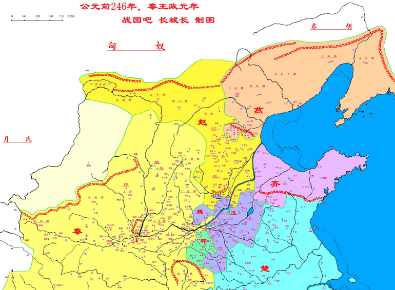 ▲注意看燕、赵两国与匈奴接壤处就有长城