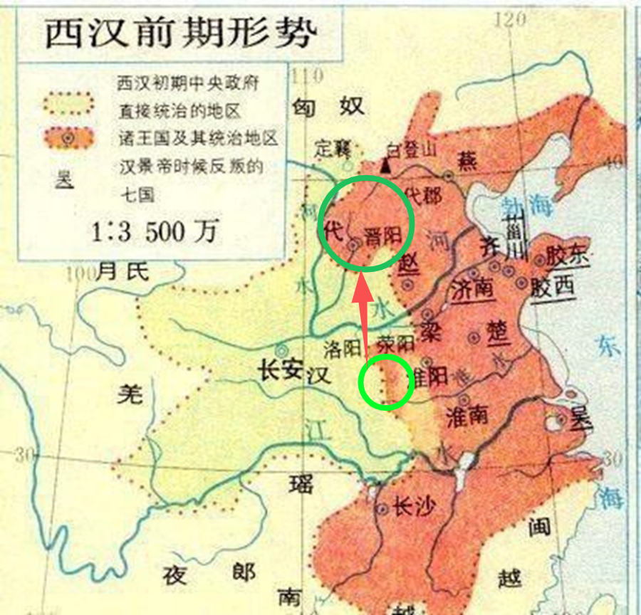 可以看到,靠近北部边境的是燕、赵两国和西汉的本土。