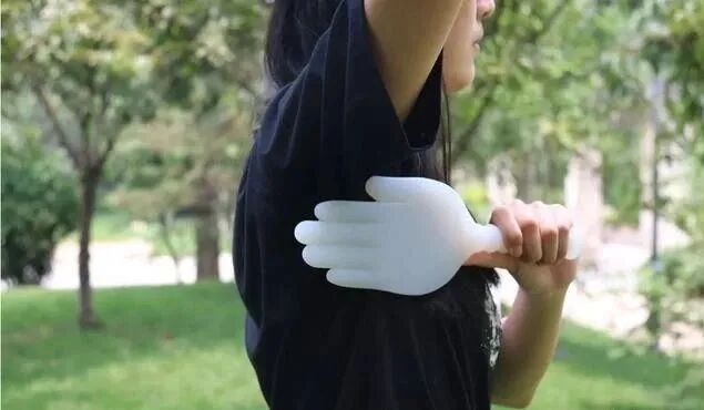 按摩手法:两手交叉呈握手状,大拇指发力,自下而上按压。