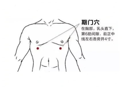 有处顺气穴——期门穴,位于乳头下方第六肋间隙。期门穴是肝经的气血汇聚点,想要疏通肝经,可揉期门穴。