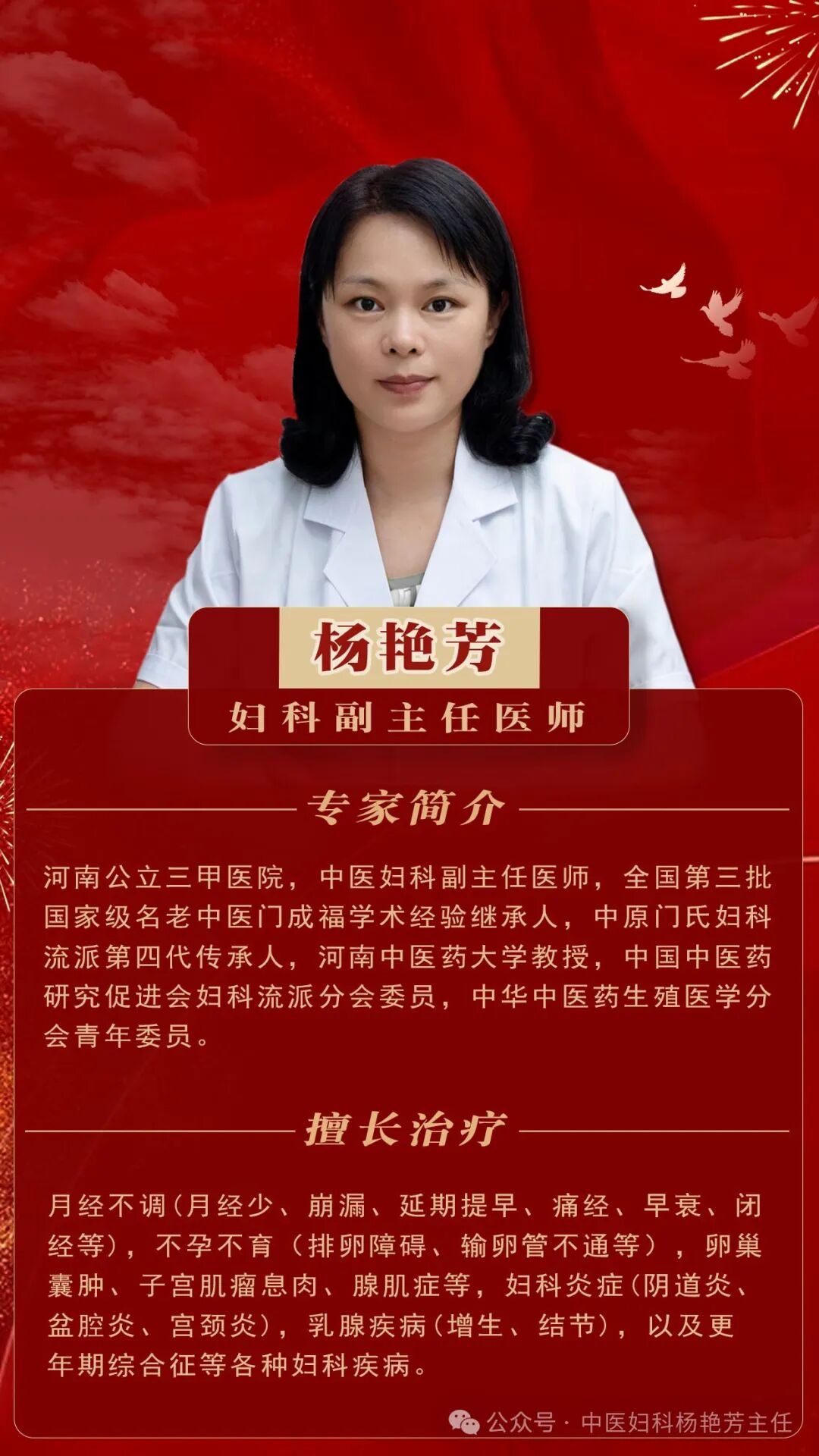 我是公立三甲医院,中医妇科主任杨艳芳,所学就是中医,临床经验丰富,看了几十年女性妇科,我一直秉承做医生的原则,用心看病,用心对待每位患者;