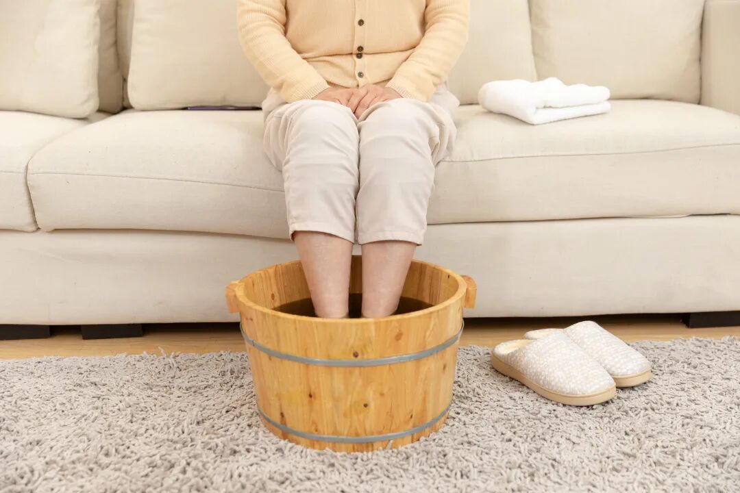 中药:艾草、益母草、当归、红花、陈皮、老姜、花椒等熬水泡脚。