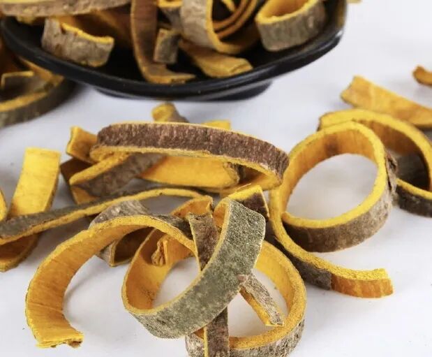 黄柏始载于《神农本草经》,列为中品,原名“蘖木”,又名川柏、檗皮、黄檗,为芸香科植物黄皮树及黄柏等除去粗皮的干燥树皮,需要在黄皮树生长十五到二十年以后取其树皮后晒干入药,属于比较珍贵的药种,它与杜仲、厚朴被称为“三木”药材。黄柏的药用历史源远流长,《本草纲目》记载:“黄柏滋阴降火…滋肾水之化源。”《本草求真》称“黄柏大泻肾火,及清膀胱湿邪”。