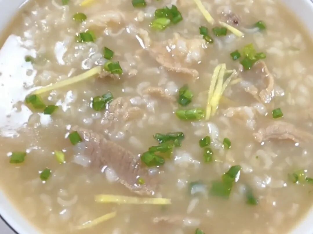 瘦肉清洗干净切丝,生姜去皮切丝,葱切段,锅中加入适量清水,放入五加皮煎取药汁,粳米淘洗干净后加入药汁和瘦肉煮粥,粥熟后放入葱花和姜丝。