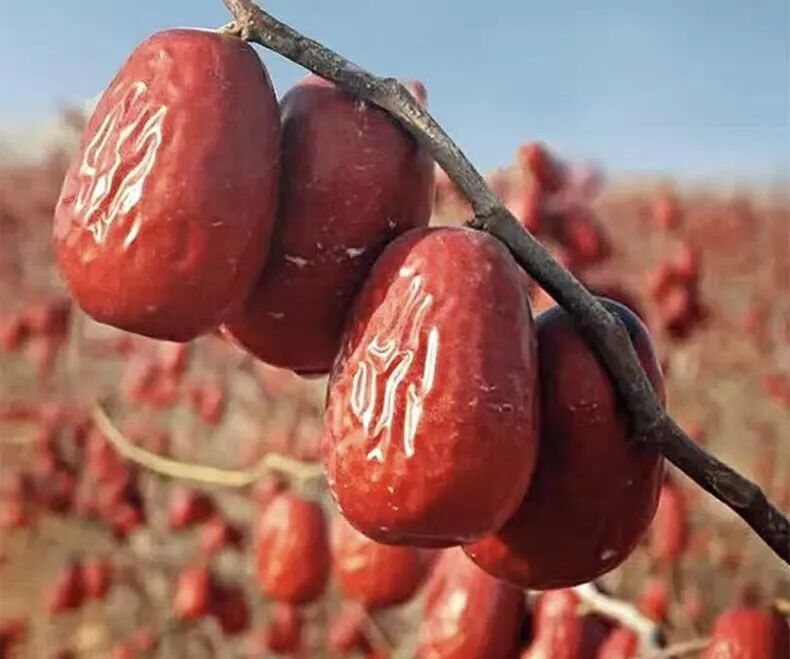 大枣自古以来就深受中国人民的喜爱,素有“木本粮食”之誉。过去,北方缺粮的地方,老百姓常以鲜枣充饥。大枣在我国有数千年的食用历史,药用始载于《神农本草经》,列为“上品”,称其有“安中养脾,助十二经。平胃气,通九窍,补少气、少津液,身中不足...和百药”等功效。张仲景在其所著《伤寒论》中,列有113个药方,其中有65个药方用上了大枣。