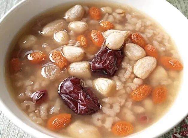 将大枣和枸杞清洗干净,粳米淘洗干净后加入大枣和适量清水煮粥,粥熟后加入枸杞焖5分钟即可。