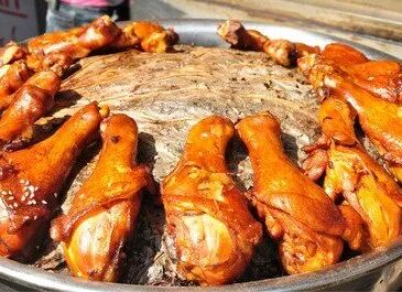 做法:将荷叶剪成3块,用开水煮一下捞起,鸡腿清洗干净,加入盐、鸡精、酱油、芝麻油等调味料腌制30分钟,将荷叶摊放在案板上将鸡腿放在荷叶上包裹好用棉线扎紧,最后将包裹好的鸡腿放入蒸盘内整齐排好后,上笼蒸35分钟即可。