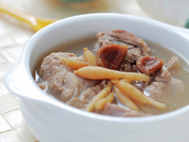 做法:准备100克太子参、50克百合、半个罗汉果、750克瘦肉,将瘦肉清洗干净切块,放入炖锅加入清水、太子参、百合和罗汉果,大火煮开后转文火煲两个小时,最后倒入少许盐和胡椒粉搅匀即可。