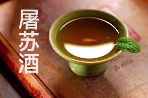 屠苏酒的制作过程:用大黄、桔梗、白术、肉桂各一两八钱,乌头六钱,菝葜一钱,分别研成末,用布袋装好,于腊月的最后一天中午悬沉井中,使药袋碰到井底之泥。到了正月初一,取出药来放置酒中,煎数沸,然后立在东方向户中饮用,以敬神灵护佑。