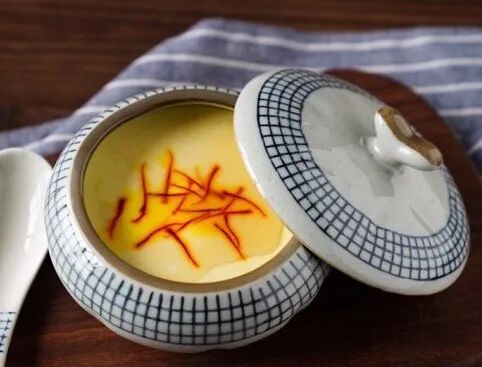将鸡蛋磕入碗中,加入水、精盐、淀粉搅拌均匀,倒入玻璃汤碗内,上锅蒸熟,淀粉放碗内加水调成湿淀粉,锅内滴油烧开,加上鸡汤和藏红花煮开,颜色变黄后添加食盐,然后用湿淀粉勾芡,浇在蒸蛋上就可以了。