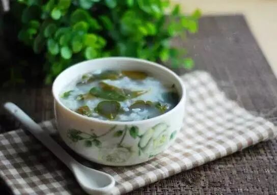 将马齿苋放入沸水中焯两分钟后清洗干净剪碎,大米清洗干净放入锅内加入水熬煮成粥后放入马齿苋继续煮五分钟,加入食盐即可。