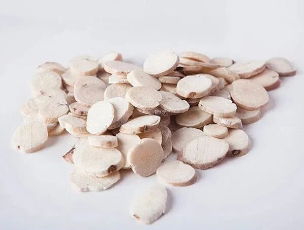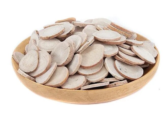 白芍性凉,味苦酸,微寒,具有补血养血、平抑肝阳、柔肝止痛、敛阴止汗等作用,它对于人体有补气益血、滋养调理血气,疏肝、平肝火、止痛消炎的作用,适用于阴虚发热、月经不调、胸腹胁肋疼痛、四肢挛急,泻痢腹痛、自汗盗汗、崩漏、带下等症。尤其是对容易阴虚的女性有很好的治疗作用。《神农本草经》记载“主邪气腹痛,除血痹,破坚积,寒热疝瘕,止痛,利小便,益气”。