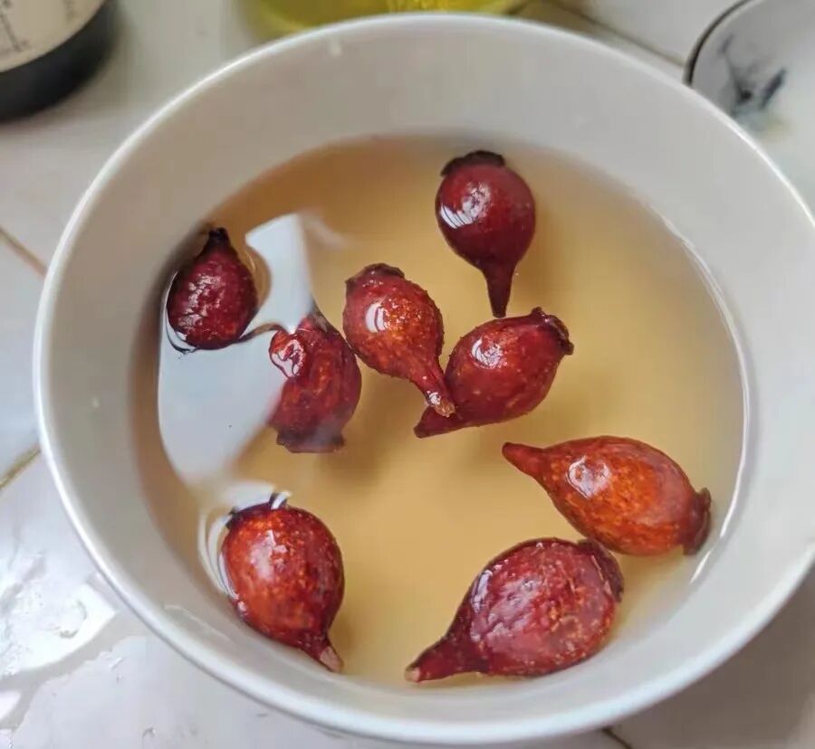 金樱子除了药用以外,古代还有作为食用的记载,早在乾隆已丑,庚寅年欠收之时,人们就用其充饥,田间农民在缺午茶时,也用它来解渴。每年的金秋时节,金樱子成熟了,就会有人上山采摘来当野果吃,不过由于果皮上长满了小刺,而且果肉不多,许多人都会用它来泡酒,用金樱子泡酒不仅简单,而且味道醇香甘甜,还有着非常不错的养生价值。尤其是肾虚的男性朋友们,适当的饮用一些金樱子酒,补肾的效果也是非常不错的。