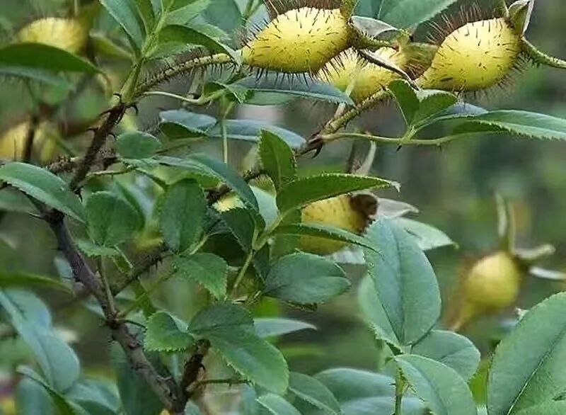 金缨子是蔷薇科植物,每年的春季开花,开花时花色为白色,花姿优美,且花朵带有香味,有很高的观赏价值,可以用来美化环境或者园林观赏,也可作为盆栽养护在家中。因为果实的形状像花瓶,所以又有别名叫“黄茶瓶”,金樱子果实的味道甘甜可口,农村都叫它“糖罐子”。果实的外表还分布着许多的小刺,等到逐渐成熟,果实的颜色也渐渐由绿色变为黄色最后变成红色,小刺的颜色也越来越深,到后来会变成黑色。