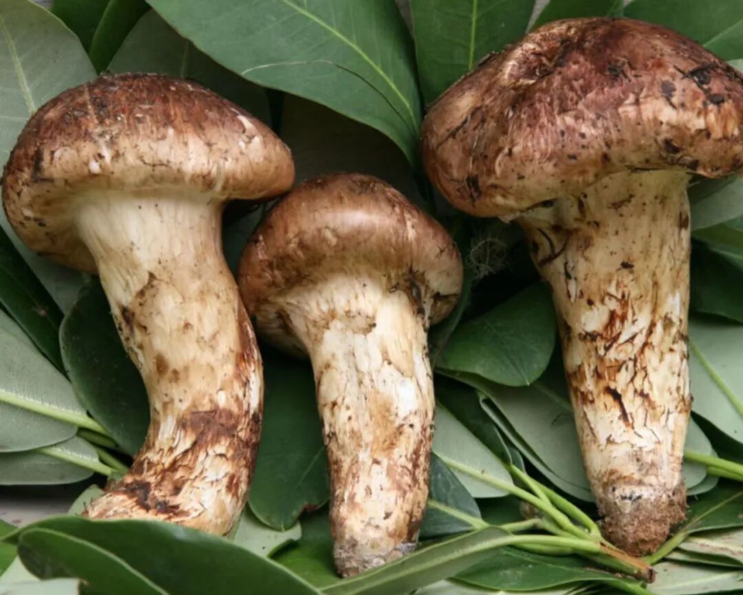 松茸又名松蕈、合菌、台菌,是松栎等树木外生的菌根真菌,浑身散发出特殊的香气,头上戴着褐色的“帽子”,身体略显浑圆。宋代唐慎微编著的《经史证类备急本草》记载,它因生于松林下,菌蕾如鹿茸,故名“松茸”。茸最大的特点就是与树共生,松茸成熟后会产生大量孢子,随风飞散入土,当发芽的孢子碰到赤松、栎树等树的细小幼根时,便吸收营养而存活。松茸的寿命极短,子实体从出土到成熟,一般只需要7天时间,子实体成熟48小时后,松茸会迅速衰老,把体内的营养反哺给松树的根系和土壤。