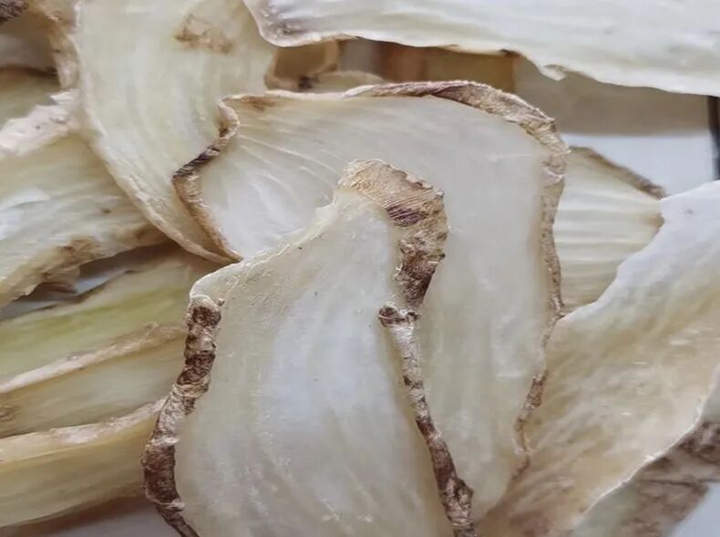 天麻,又名鬼督邮、定风草,为多年生共生植物,药用部分为植物的块状茎,是一味常用而且较名贵的中药,在我国普遍栽培,分布较广。冬至以后茎枯时采挖者称“冬麻”,体重饱满质佳;立夏以前植株出芽时采挖者称“春麻”,体松皮多皱缩者质次。采挖后,除去地上茎及菌丝,擦去外皮,洗净煮透或蒸熟,烘干或晒干,润透切片,以体实泽亮半透明者为佳。