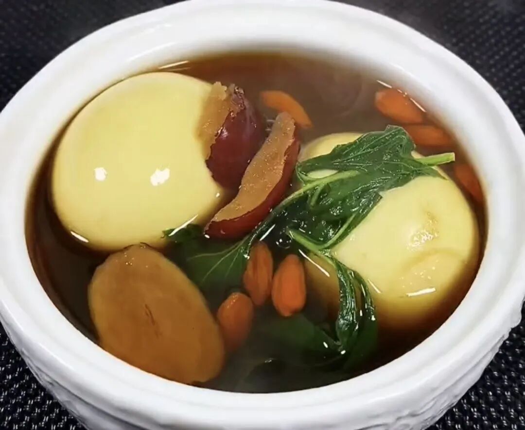 做法: 元胡10g,枣3颗,枸杞10g,益母草30g,鸡蛋2个。